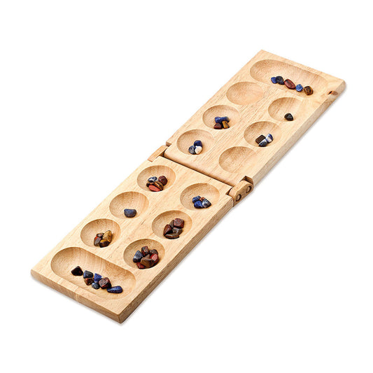 Joc de strategie Mancala Cayro, tabla din lemn, 48 pietre naturale