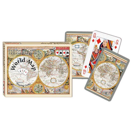 Set carti de joc de lux, 2 x 55, Harta Lumii - Piatnik
