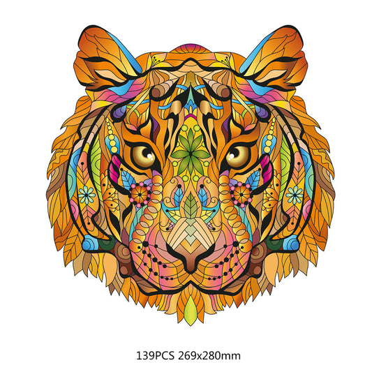 Puzzle din lemn multicolorat - Tigru, 138 piese