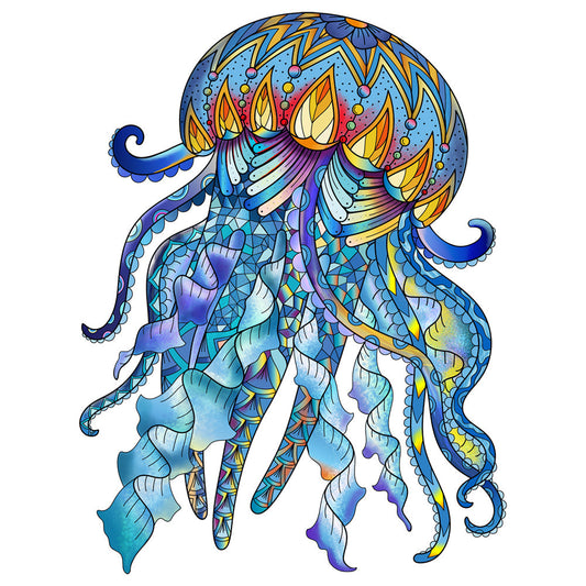 Puzzle din lemn multicolorat - Meduza, 106 piese