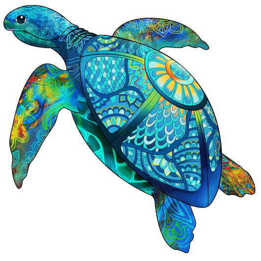 Puzzle din lemn multicolorat - Broasca testoasa, 125 piese