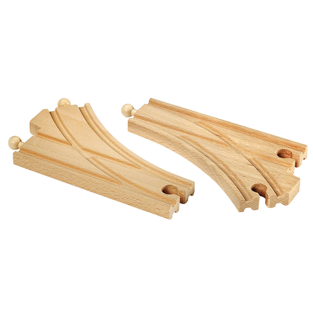 Macaz simplu pentru trenulete BRIO, cu aceste macazuri simple din lemn iti completezi traseul si ii poti da forma dorita.