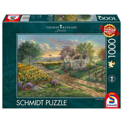 Puzzle Schmidt: Thomas Kinkade - Campuri de floarea-soarelui - contine 1000 de piese de puzzle.