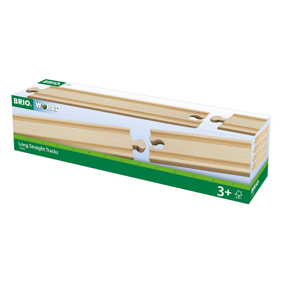 Set de sine drepte, lungi pentru trenulete BRIO, cu aceste sine lungi drepte din lemn iti completezi traseul si ii poti da forma dorita.