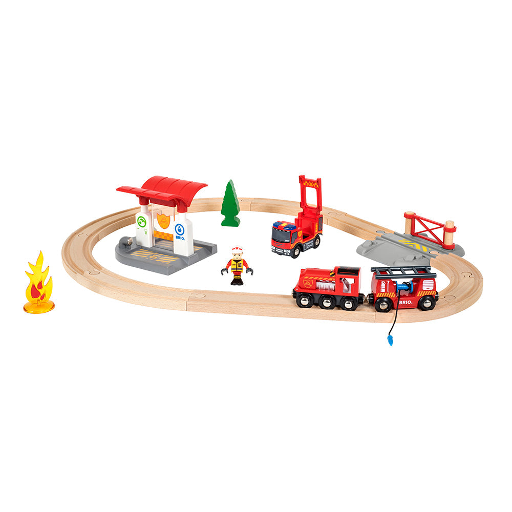 Set trenulet pompieri BRIO, cu acest set din lemn iti completezi traseul si ii poti da forma dorita.