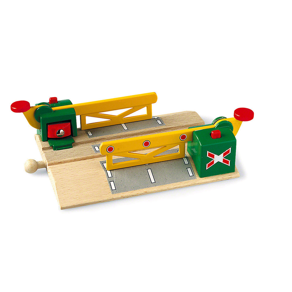 Trecere calea ferata cu bariera cu actionare magnetica BRIO, cu acest set din lemn iti completezi traseul si ii poti da forma dorita.