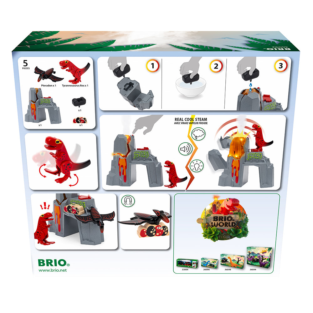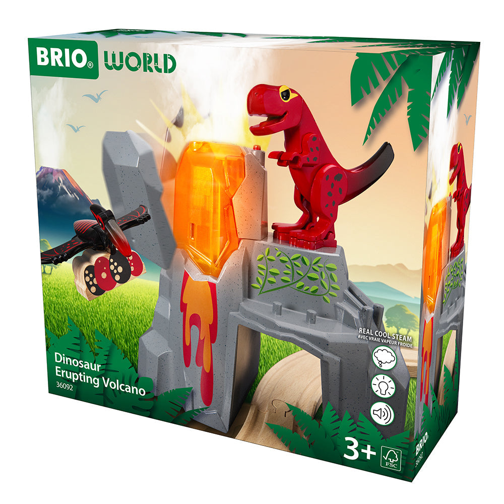 Vulcan in eruptie cu figurina dinozaur pentru trenulete BRIO, 3+ ani